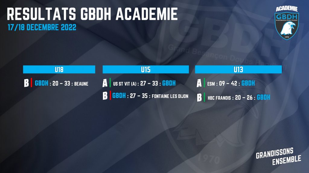 #GBDHACADÉMIE : LES RÉSULTATS DU WEEK-END (17-18 DÉCEMBRE) !