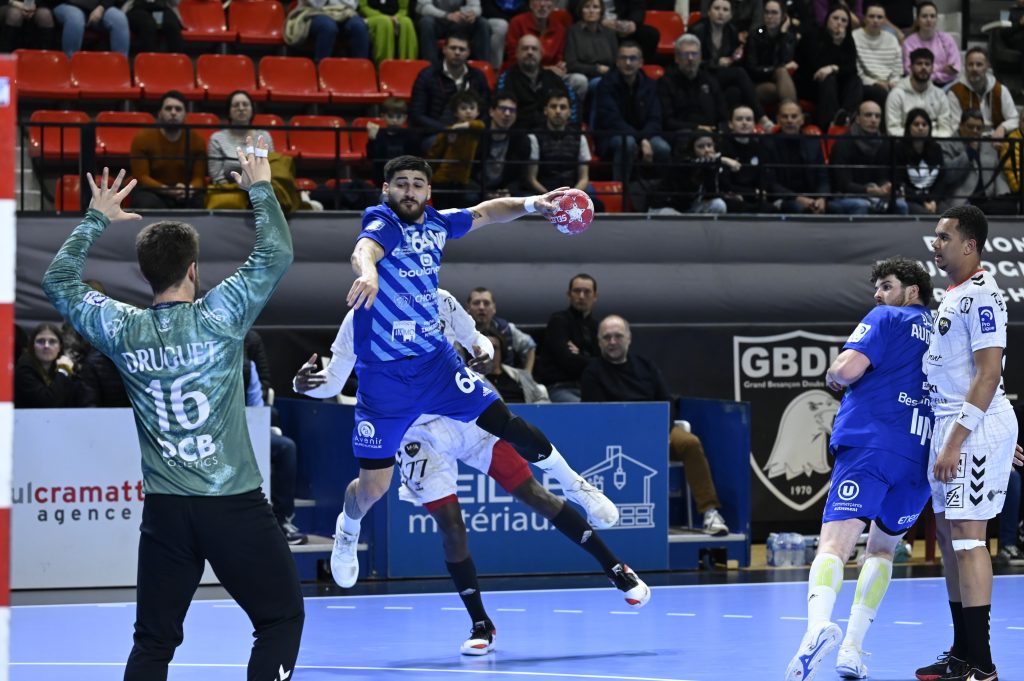 L’entrée fracassante d’Aristide EWE (11 arrêts – 50% de réussite) dans les cages bisontines permettait aux hommes de Benoit GUILLAUME de prendre le large : 32-28 à la 54ème minute.
