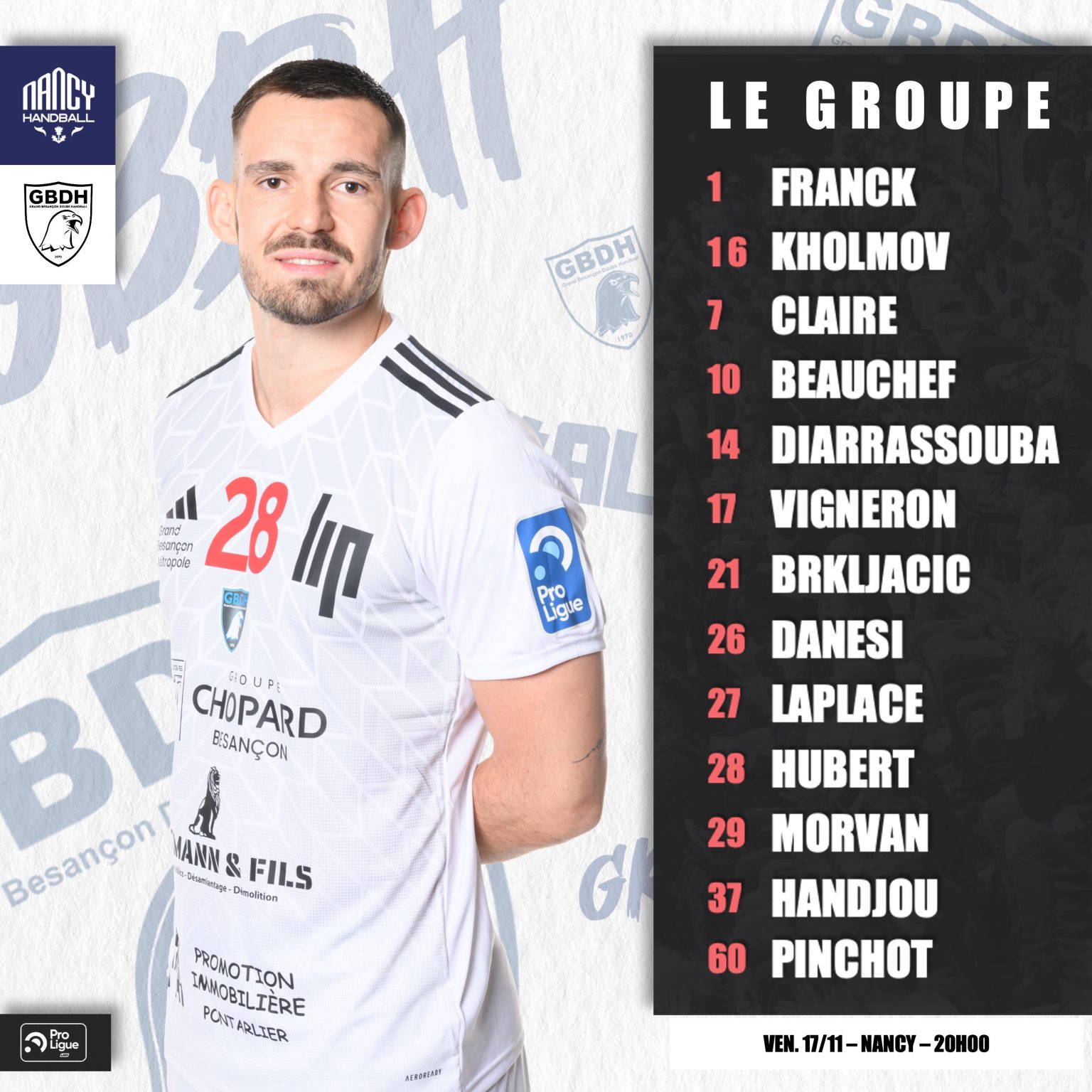 Découvrez ci-dessous le groupe sélectionné par le coach Christophe VIENNET et Gaël MICHAUD avant NANCY – GBDH !