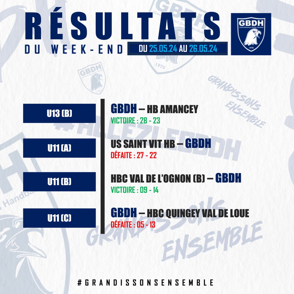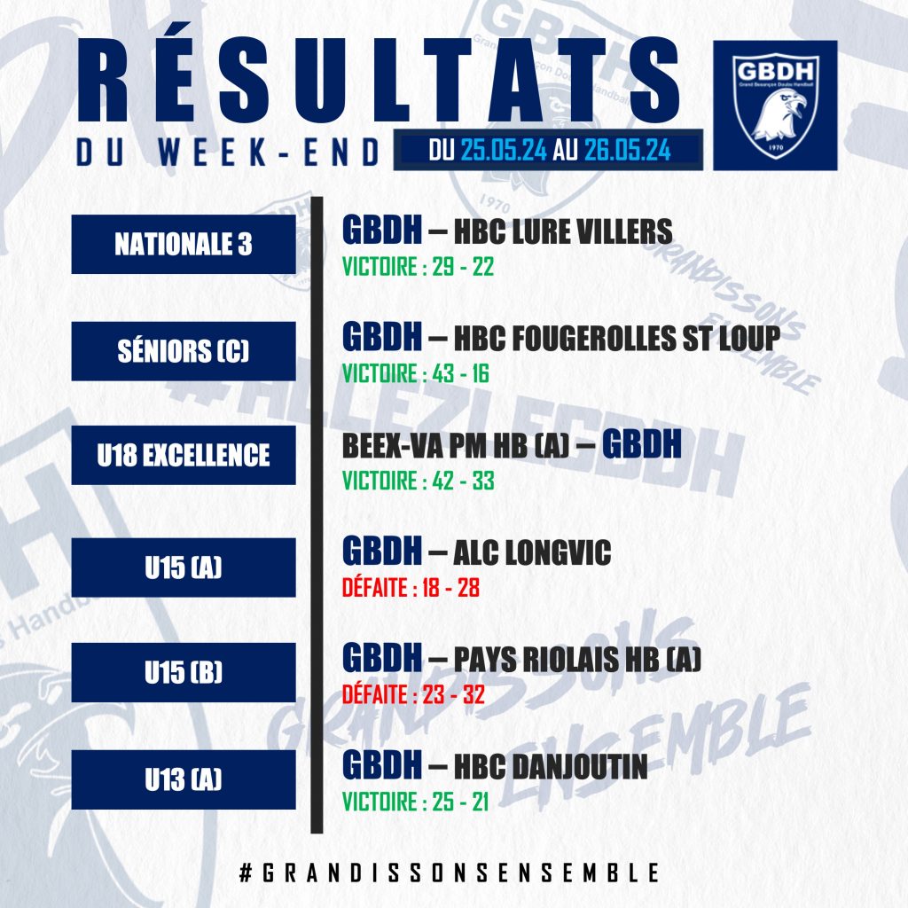 #JEUNES : RÉSULTATS DU WEEK-END / 25-26 MAI 2024 GBDH il y a 1 an LES RÉSULTATS DU WEEK-END !Retrouvez ci-dessous les différents résultats de notre secteur amateur du week-end dernier ! ALLEZ LE GBDH !