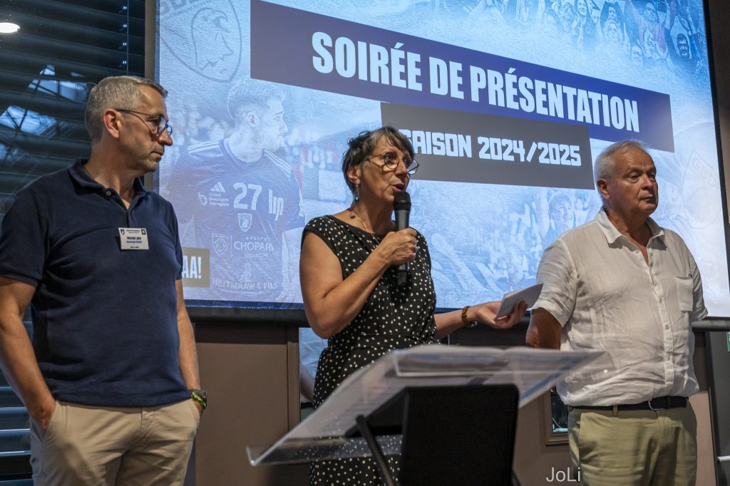 La soirée a débuté par les discours des représentants des collectivités, soulignant l’importance du soutien au sport et au développement du handball à Besançon. Le club en a profité pour présenter ses ambitions et les objectifs fixés pour la saison à venir, tant sur le plan sportif que communautaire.