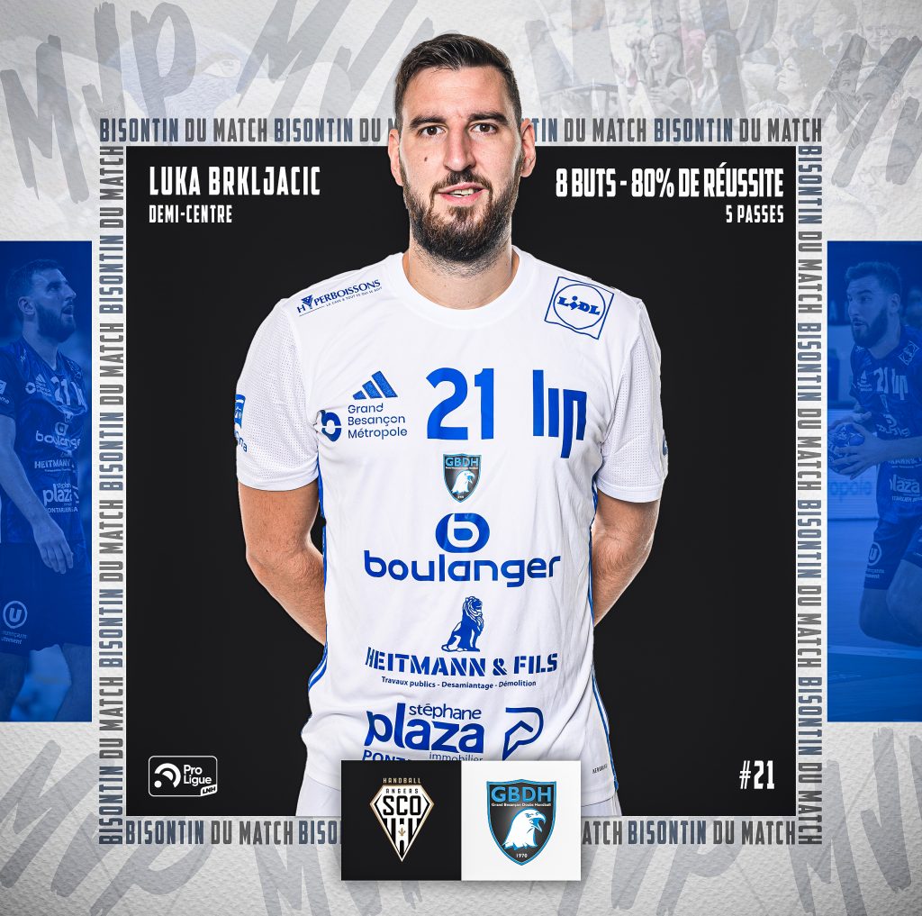 Le demi-centre bisontin, Luka Brkljacic, a été l’un des grands artisans de ce succès. Avec 8 buts inscrits à 80 % de réussite au tir et 5 passes décisives, il a brillé tout au long du match, apportant non seulement de l’efficacité en attaque, mais aussi une contribution décisive dans l’animation du jeu.