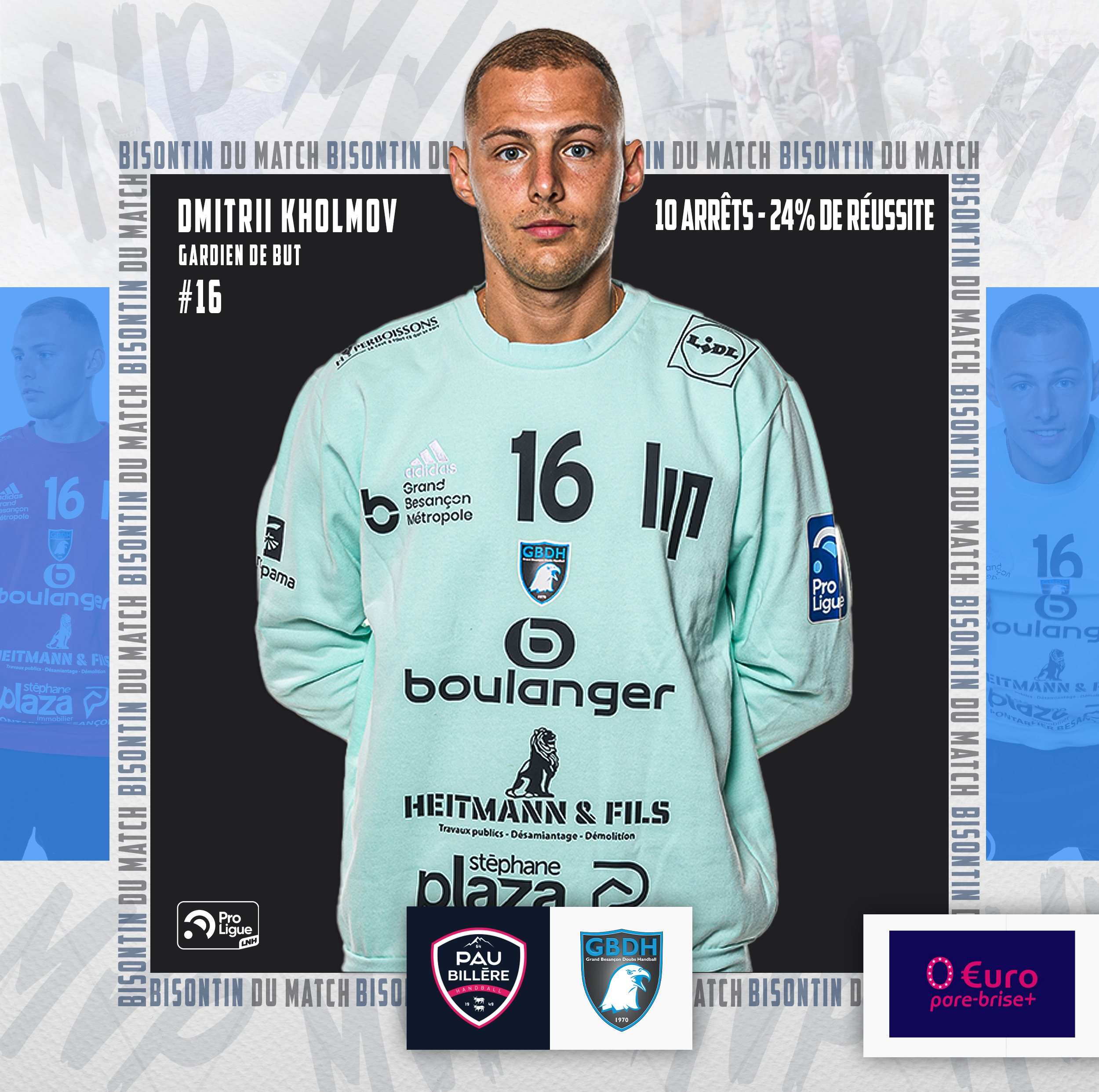 Malgré un score sévère, le gardien bisontin a été le véritable rempart défensif du GBDH hier soir, avec 10 arrêts décisifs qui ont permis de maintenir son équipe dans la rencontre jusqu’à la fin de la première mi-temps.
