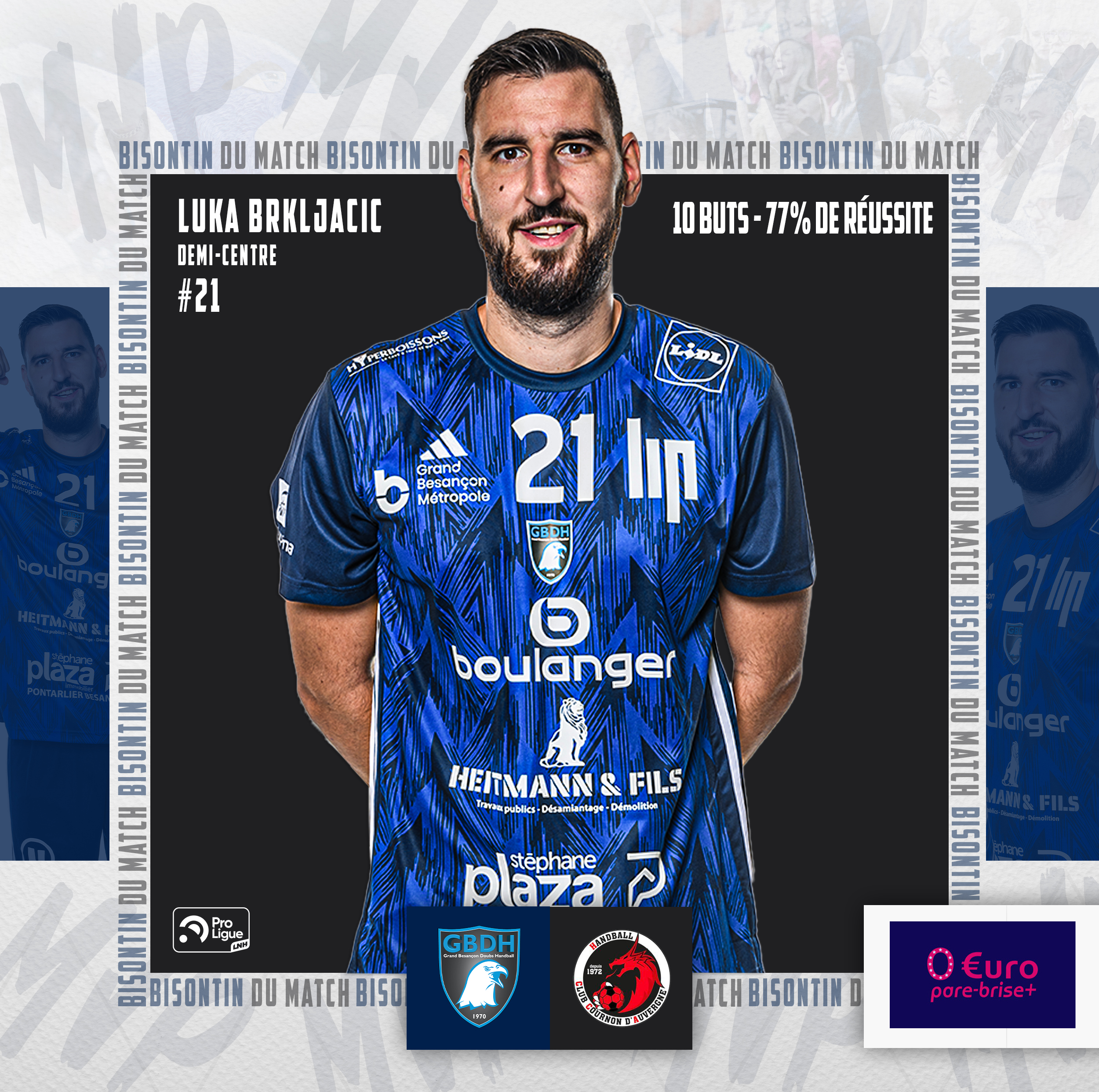 / LUKA BRKLJACIC, BISONTIN DU MATCH EURO PARE-BRISE + BESANÇON !