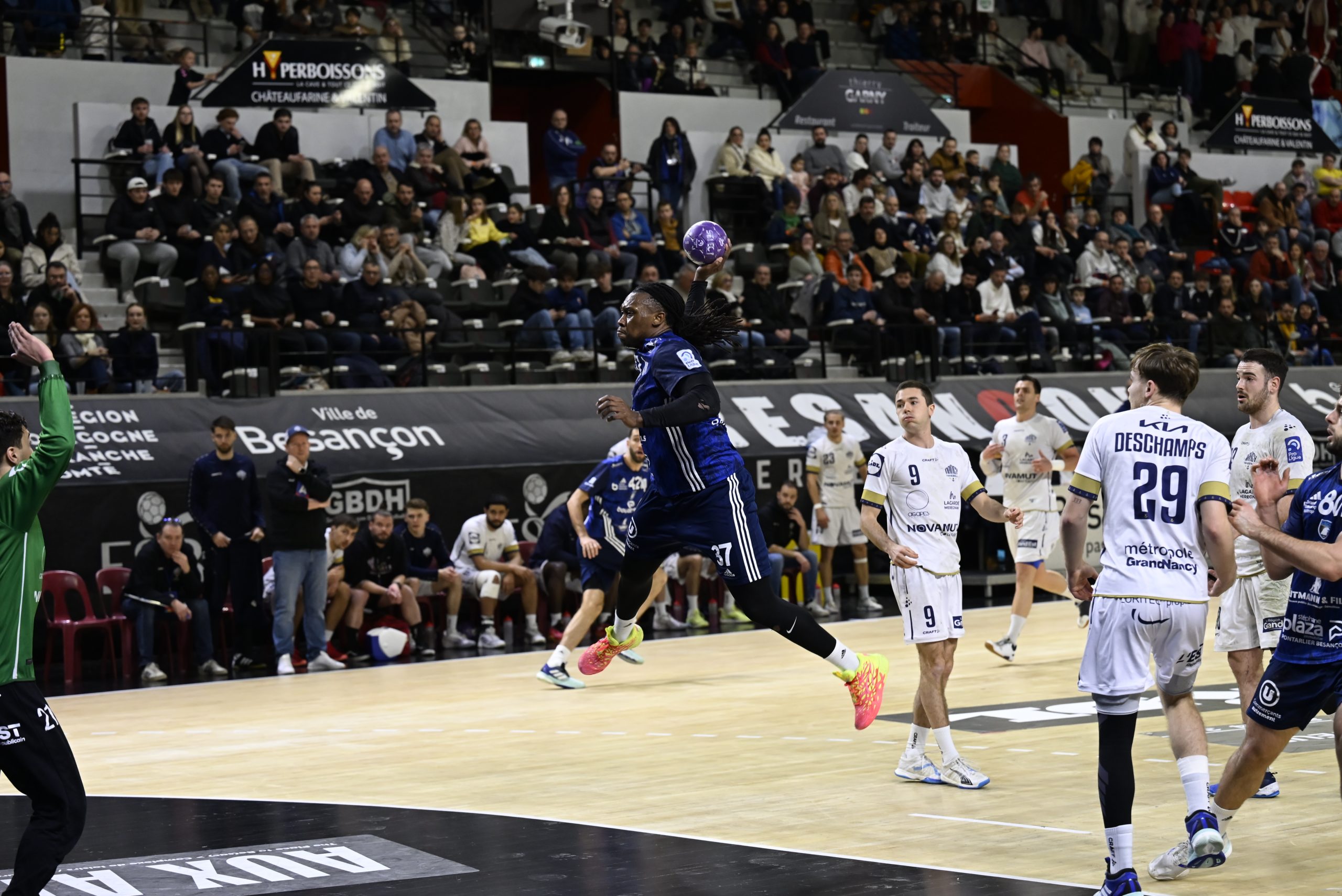Dès l’entame, les coéquipiers de Sébastien DANESI ont fait preuve d’une belle intensité, s’appuyant sur une attaque rapide et des performances notables des cadres. Les bisontins ont tenu le rythme imposé par Nancy, parvenant à rester au contact pendant toute la première mi-temps. À la pause, l’écart restait raisonnable, avec Nancy légèrement devant.