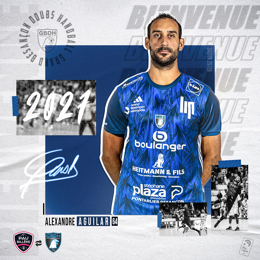 Le Grand Besançon Doubs Handball est heureux d’officialiser l’arrivée d’Alexandre AGUILAR, deuxième recrue pour la saison 2025/2026. Ce pivot chevronné, âgé de 33 ans (1m96, 103 kg), apportera toute son expertise et sa détermination à l’équipe bisontine. Il s’engage pour deux saisons, jusqu’en 2027.