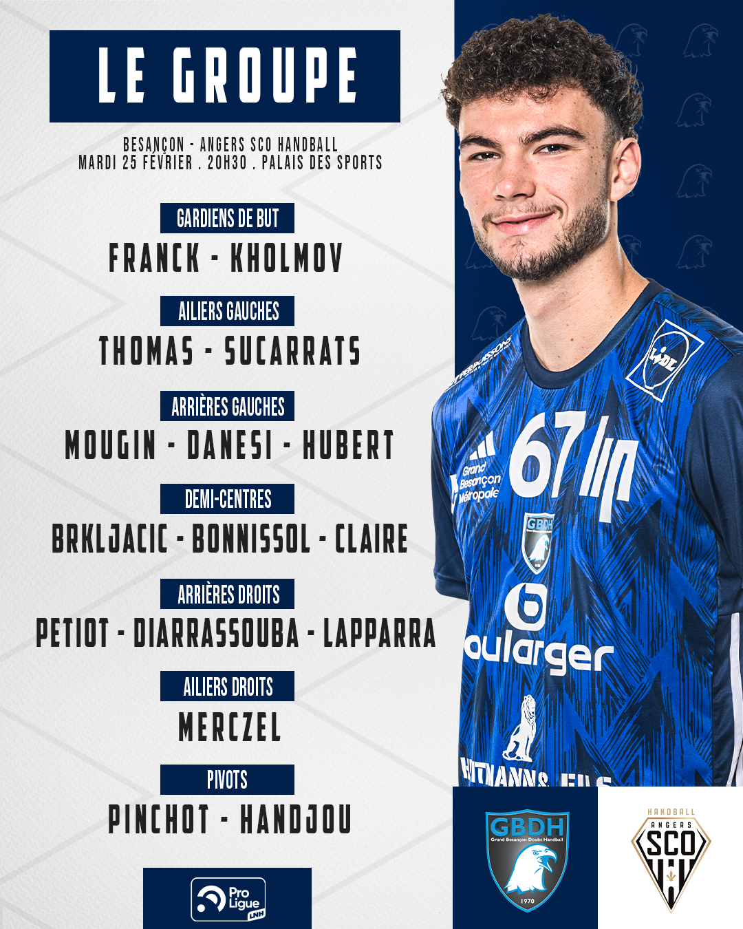 Pour cela, les joueurs bisontins auront l’opportunité de se racheter ce mardi soir au Palais des Sports face à Angers, lanterne rouge du championnat. Une rencontre qui semble abordable sur le papier, mais qu’il faudra prendre avec sérieux face à une équipe angevine en manque de points mais qui reste sur une belle résistance face au leader Frontignan (38-36).