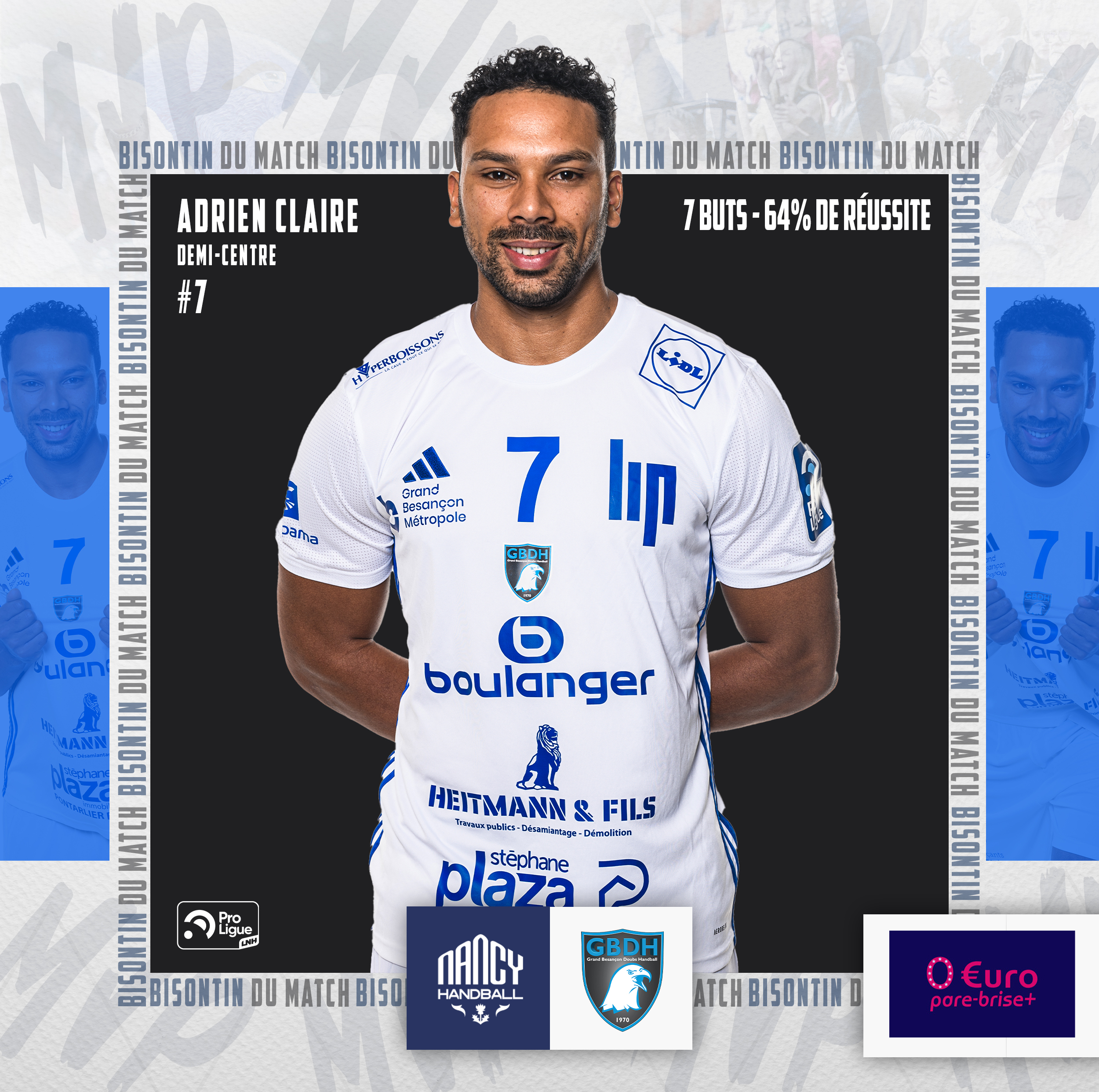 Porté par son capitaine Adrien Claire, auteur d’une belle prestation avec 7 buts, et par le jeune Clément Merczel (6 buts), le GBDH est revenu à hauteur de Nancy à la 45ème minute (26-26). Un retour qui a fait vibrer les supporters bisontins et laissé espérer un scénario plus favorable.