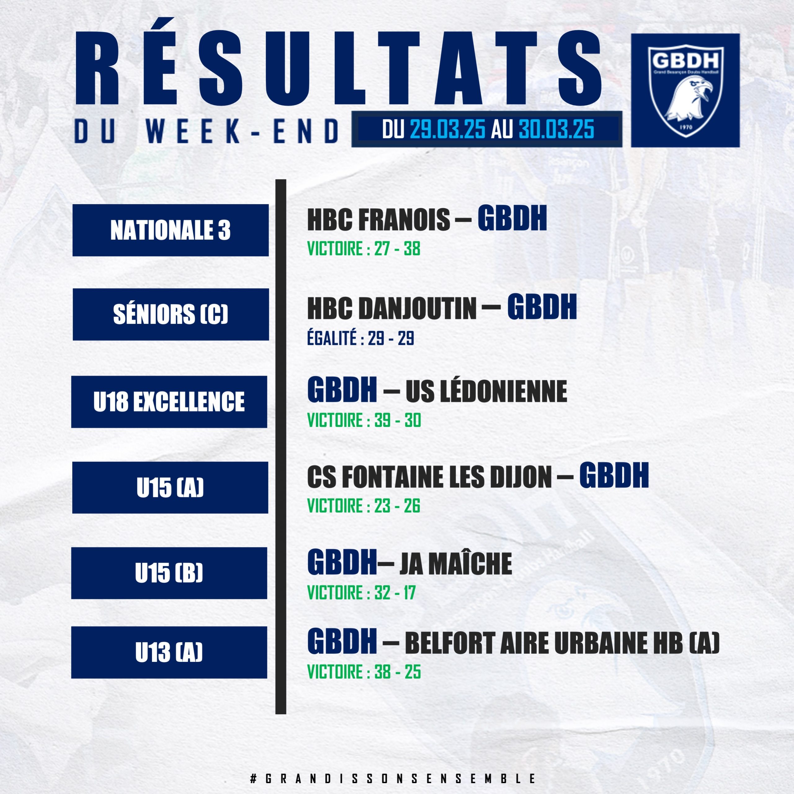 #FORMATION : LES RÉSULTATS DU WEEK-END – 29/30 MARS 2025