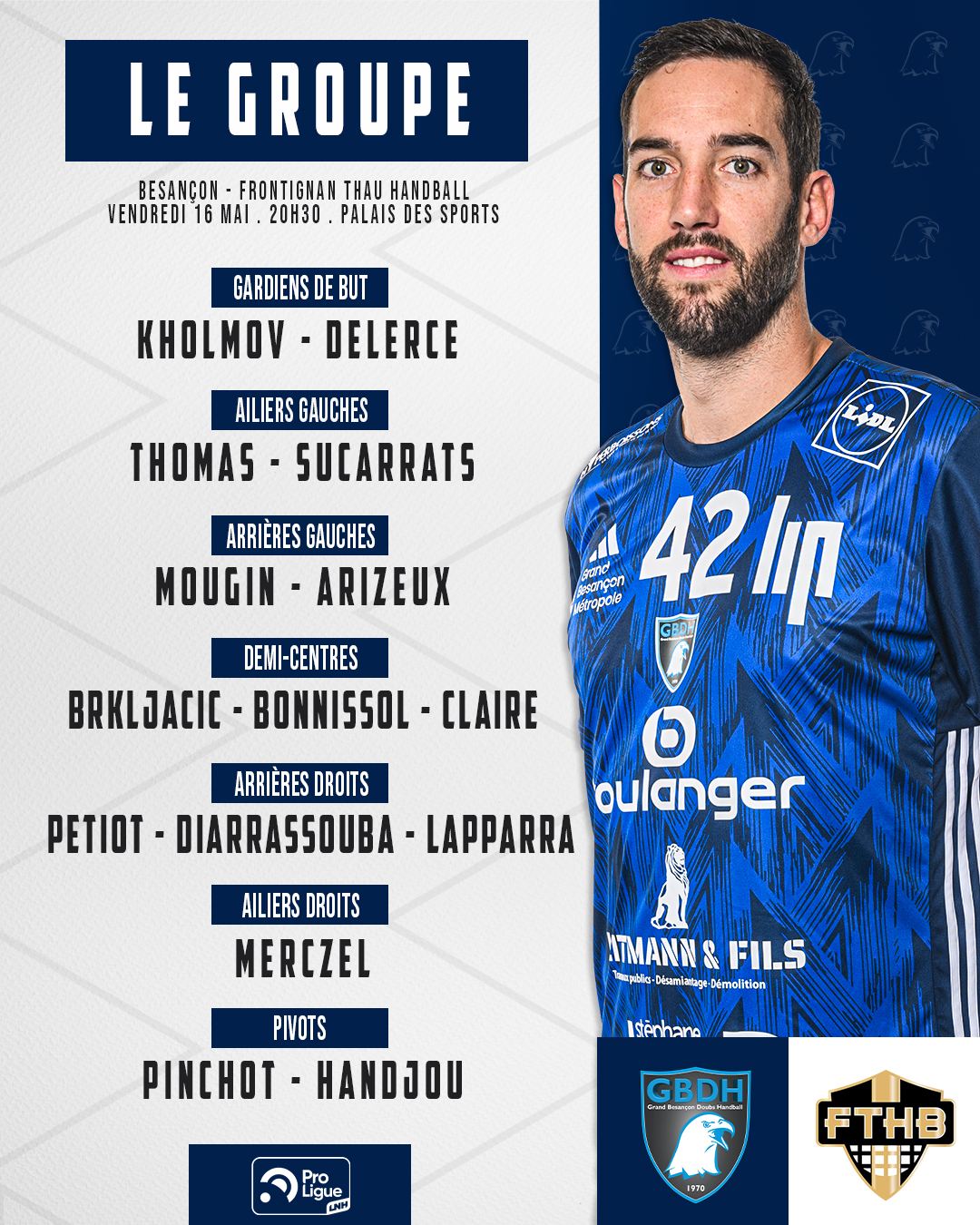 Découvrez ci-dessous le groupe sélectionné par le coach Christophe VIENNET et Gaël MICHAUD avant GBDH – FRONTIGNAN