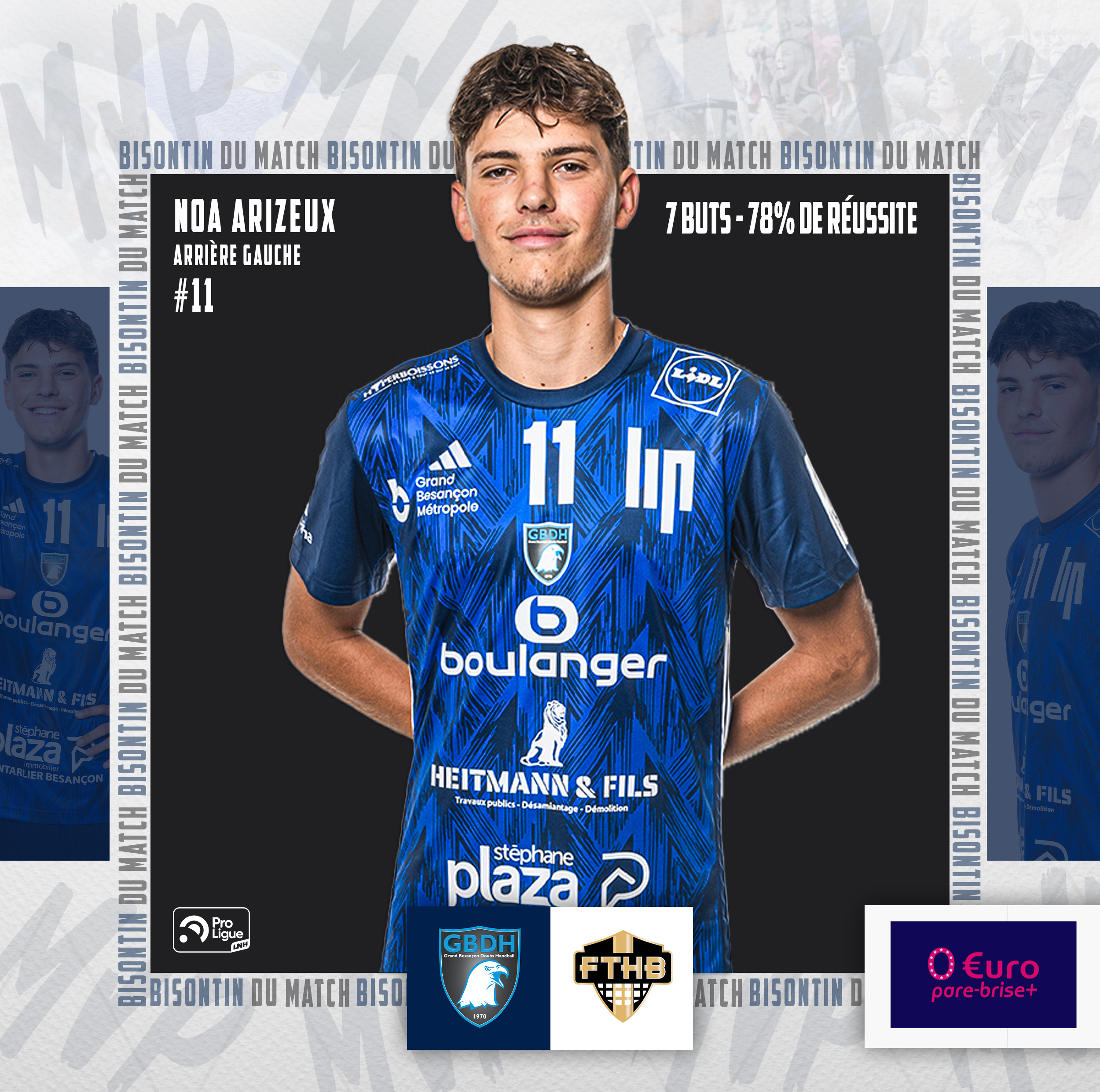 La jeune garde bisontine au pouvoir ! À seulement 19 ans, notre arrière gauche a sorti le grand jeu : 7 buts, 78 % de réussite et une vraie montée en puissance pour remettre l’équipe sur les rails en seconde période