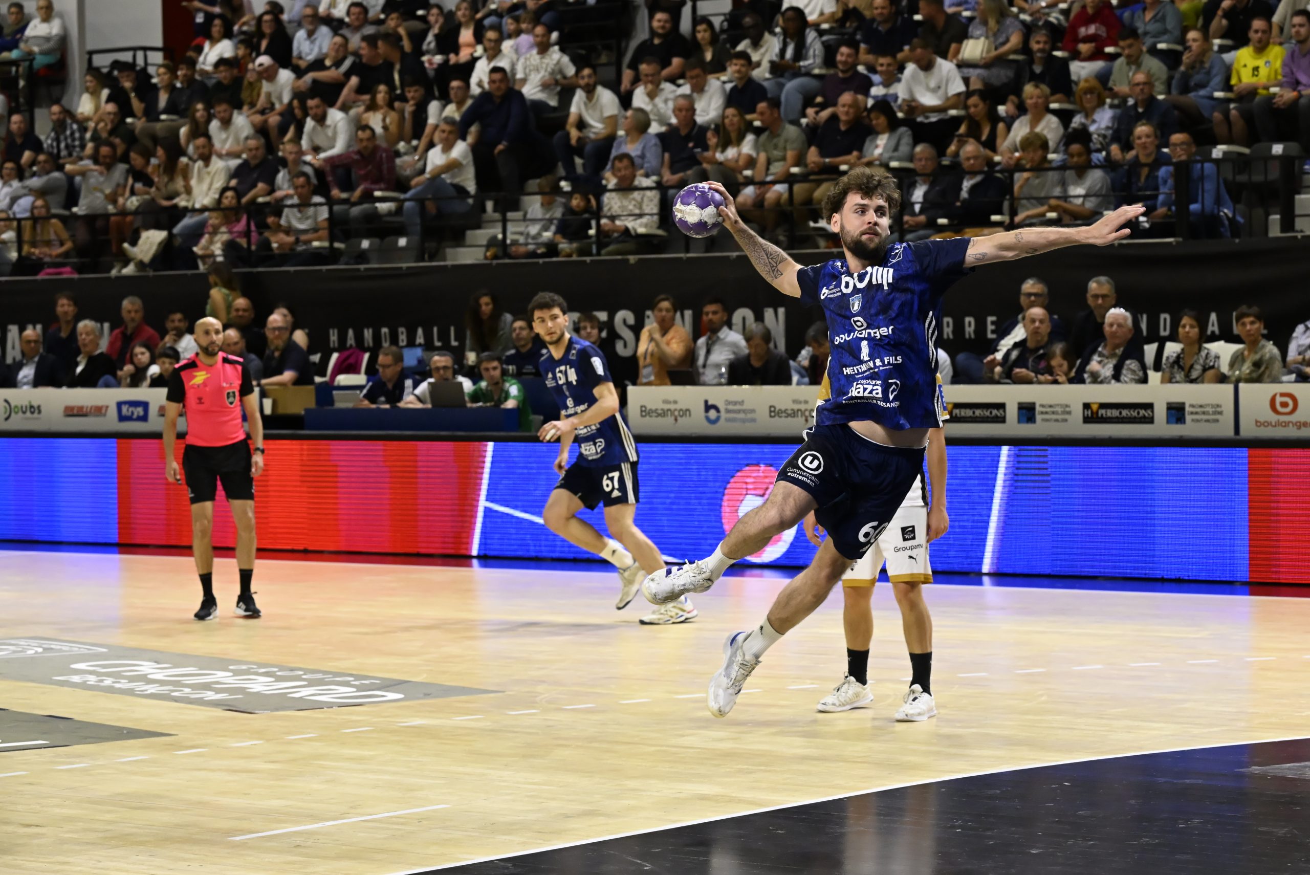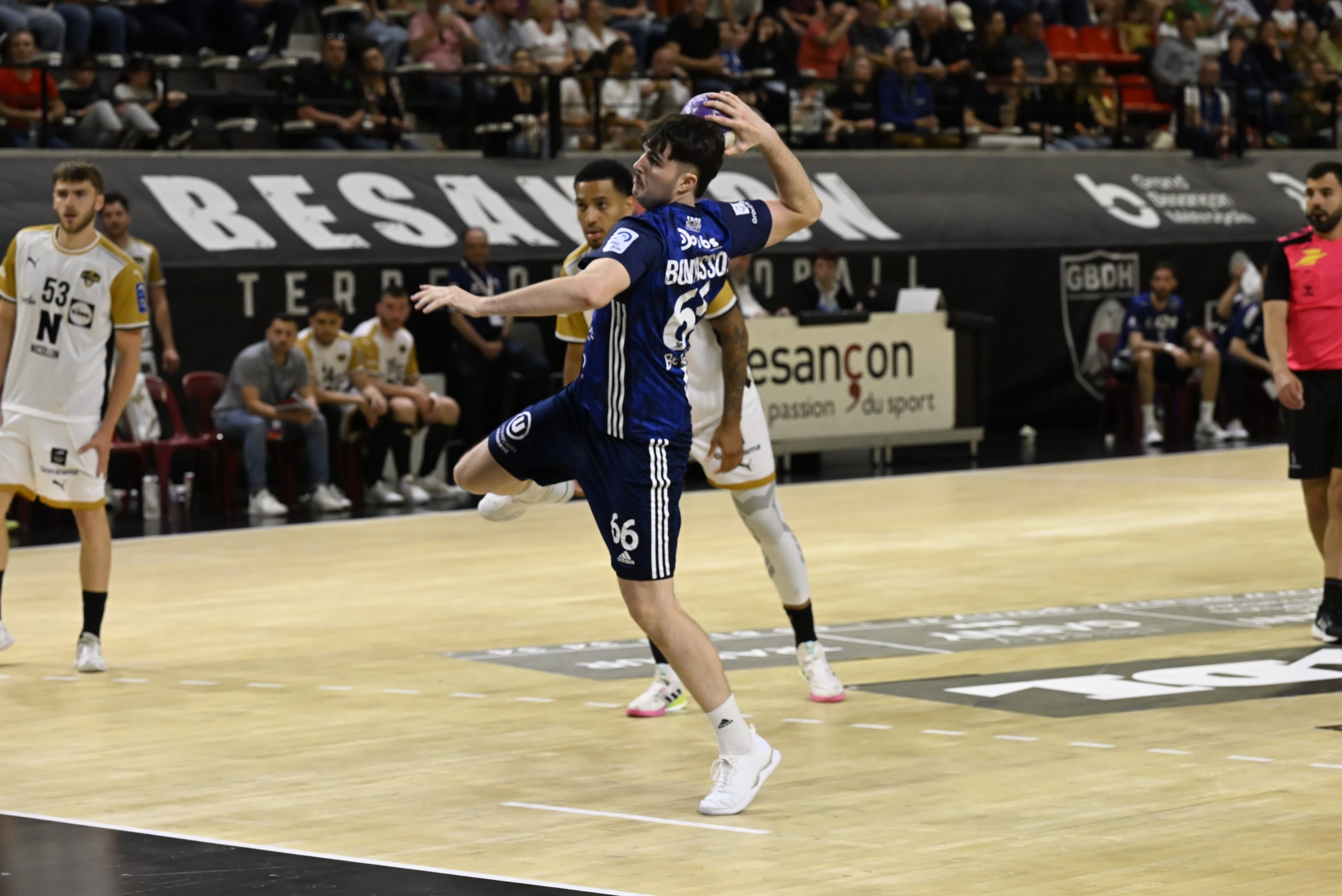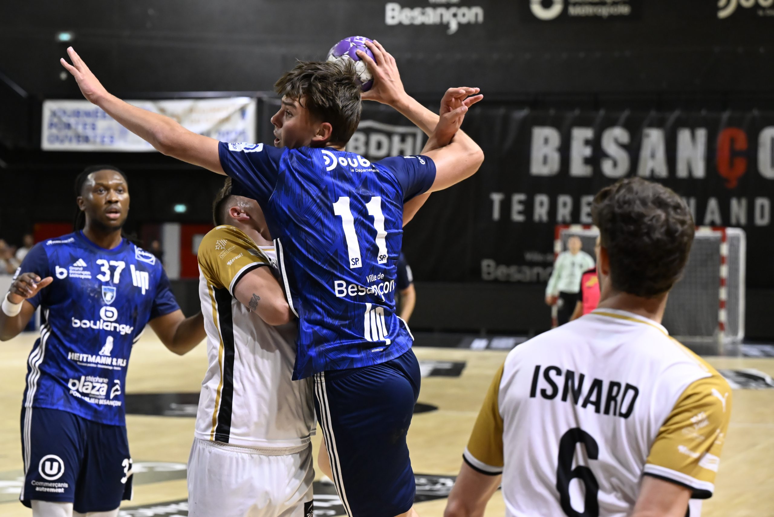 En seconde mi-temps, les Bisontins ont tenté de revenir dans la partie, portés par un public fidèle et des individualités combatives. Malheureusement, chaque rapprochement au score était suivi d’un nouveau break adverse. Frontignan, plus constant, a su faire parler son expérience collective, profitant notamment des exclusions temporaires bisontines et de plusieurs ballons perdus. Fin du match : 29-34.