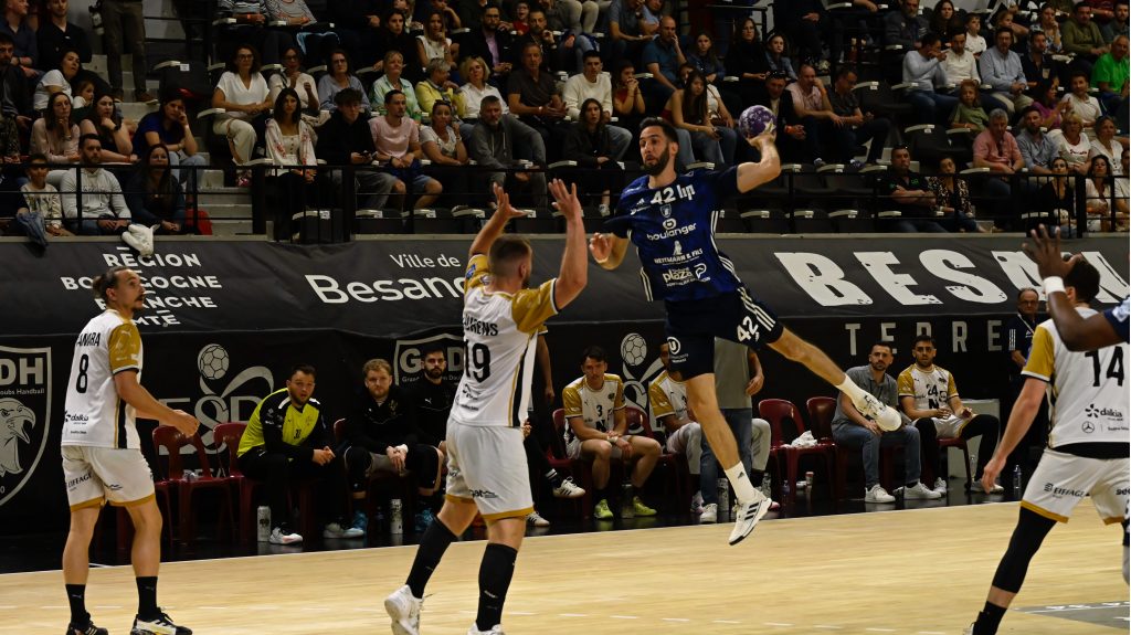 Pour sa dernière sortie de la saison 2024/2025, le Grand Besançon Doubs Handball s’est incliné à domicile face à Frontignan (29-34). Le GBDH a pourtant livré une entame sérieuse, tenant tête à son adversaire durant les premières minutes. Mais des erreurs techniques à répétition et un manque d’efficacité dans les moments clés ont permis à Frontignan de prendre l’ascendant dès la fin de première période.