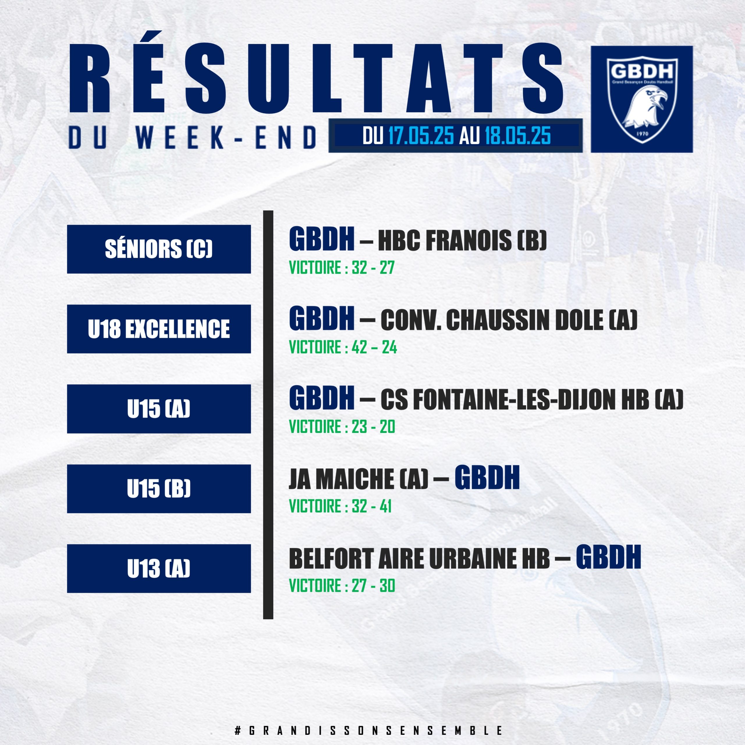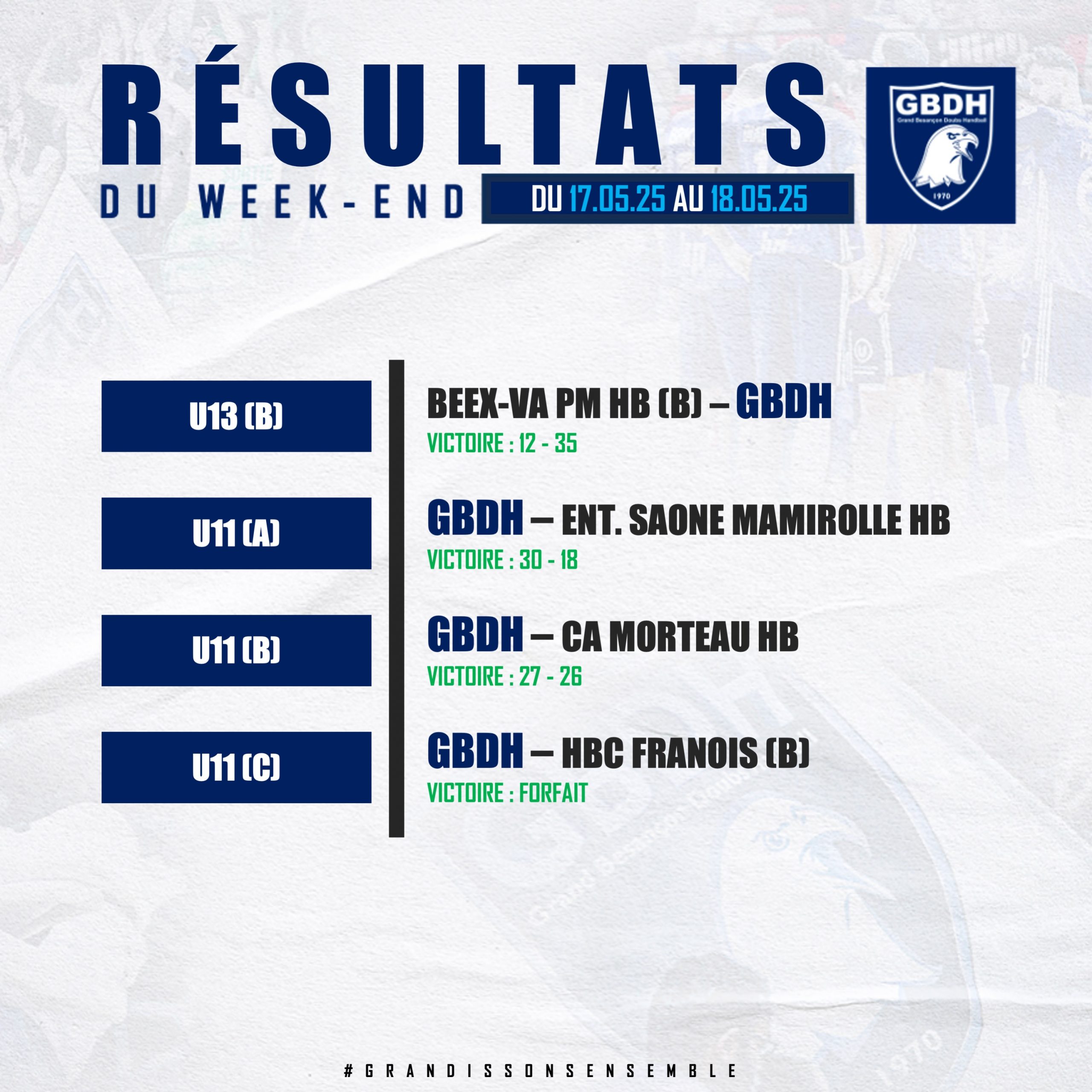 #FORMATION : LES RÉSULTATS DU WEEK-END – 17/18 MAI 2025 GBDH il y a 5 mois RÉSULTATS DU WEEK-END DES ÉQUIPES JEUNES ! GRANDISSONS ENSEMBLE !