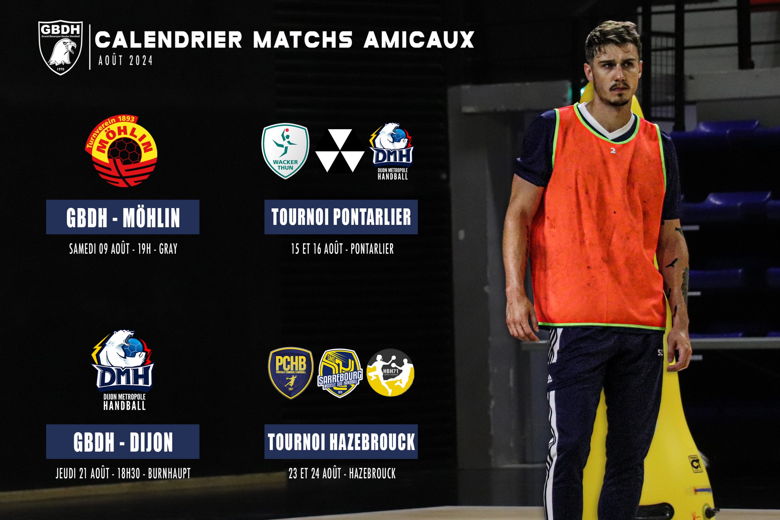 Avant ce rendez-vous officiel, le groupe professionnel disputera six matchs amicaux. La campagne débutera le samedi 9 août à Gray face aux Suisses du TV Möhlin.