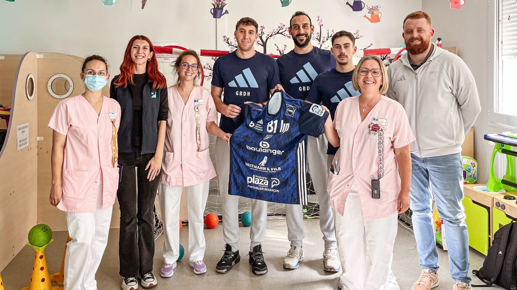 Dans le cadre de la Semaine du sport à l’hôpital, le Grand Besançon Doubs Handball s’est rendu au sein du service de pédiatrie du CHU de Besançon pour une journée placée sous le signe du partage et du mouvement. Avec l’association Premiers de Cordée, nos joueurs, accompagnés d’une éducatrice diplômée du club, ont proposé une initiation sportive aux enfants hospitalisés, leur offrant un moment de plaisir, de découverte et de convivialité.