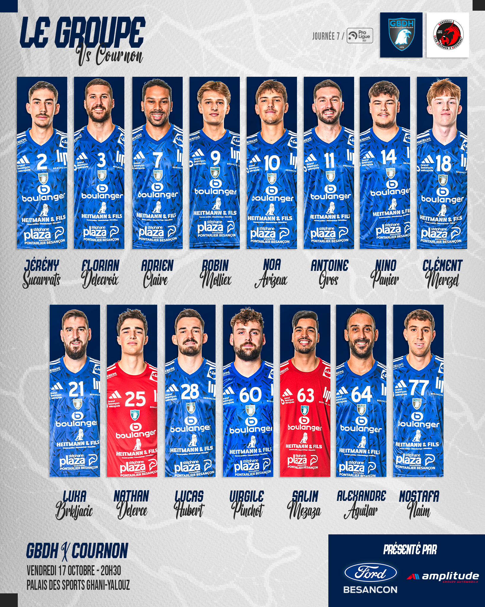 À noter également l’absence d’un visage bien connu du public bisontin : Enzo Handjou, désormais pivot de Cournon, ne fera pas son retour à Besançon ce soir. Sorti sur blessure lors de la dernière journée de championnat, il a été opéré hier d’une rupture du tendon d’Achille. Tout le club du GBDH lui souhaite un prompt rétablissement et beaucoup de courage dans sa convalescence.