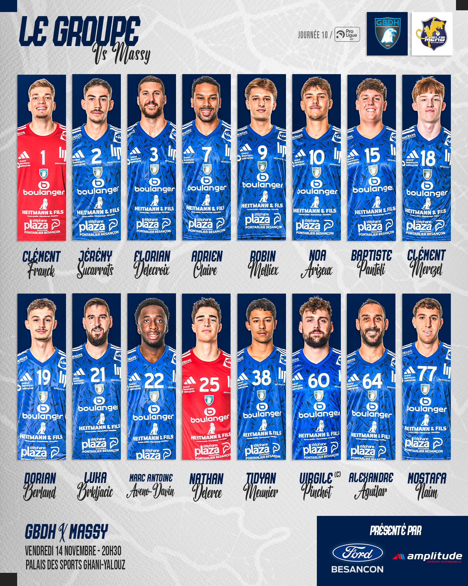 Découvrez ci-dessous le groupe sélectionné par le coach Christophe VIENNET et Gaël MICHAUD avant GBDH – MASSY