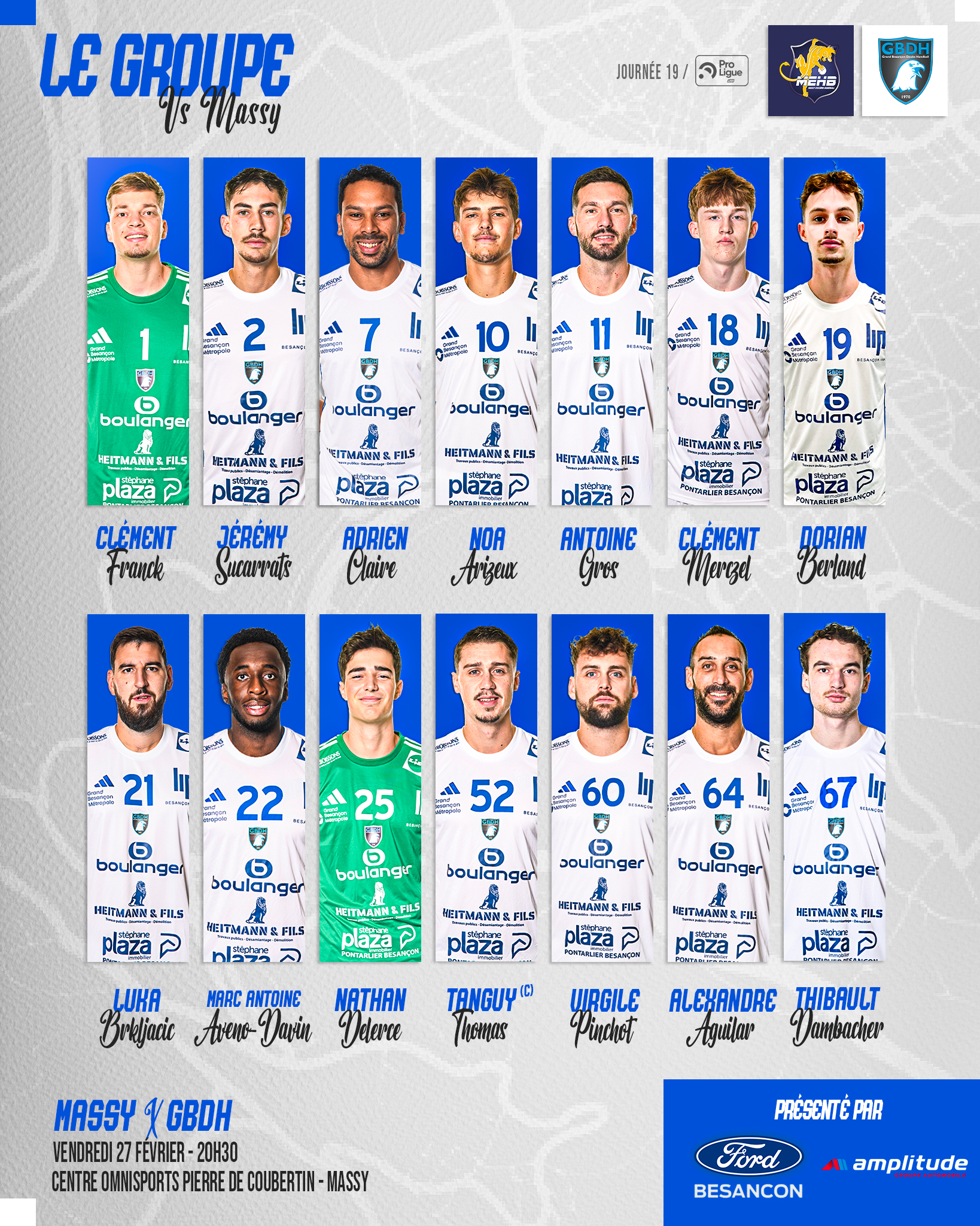 Le GBDH se déplace ce soir en terres franciliennes pour y affronter le Massy Essonne Handball, à l’occasion de la 19e journée de ProLigue. Un rendez-vous important pour les Bisontins, déterminés à enrayer une dynamique négative.