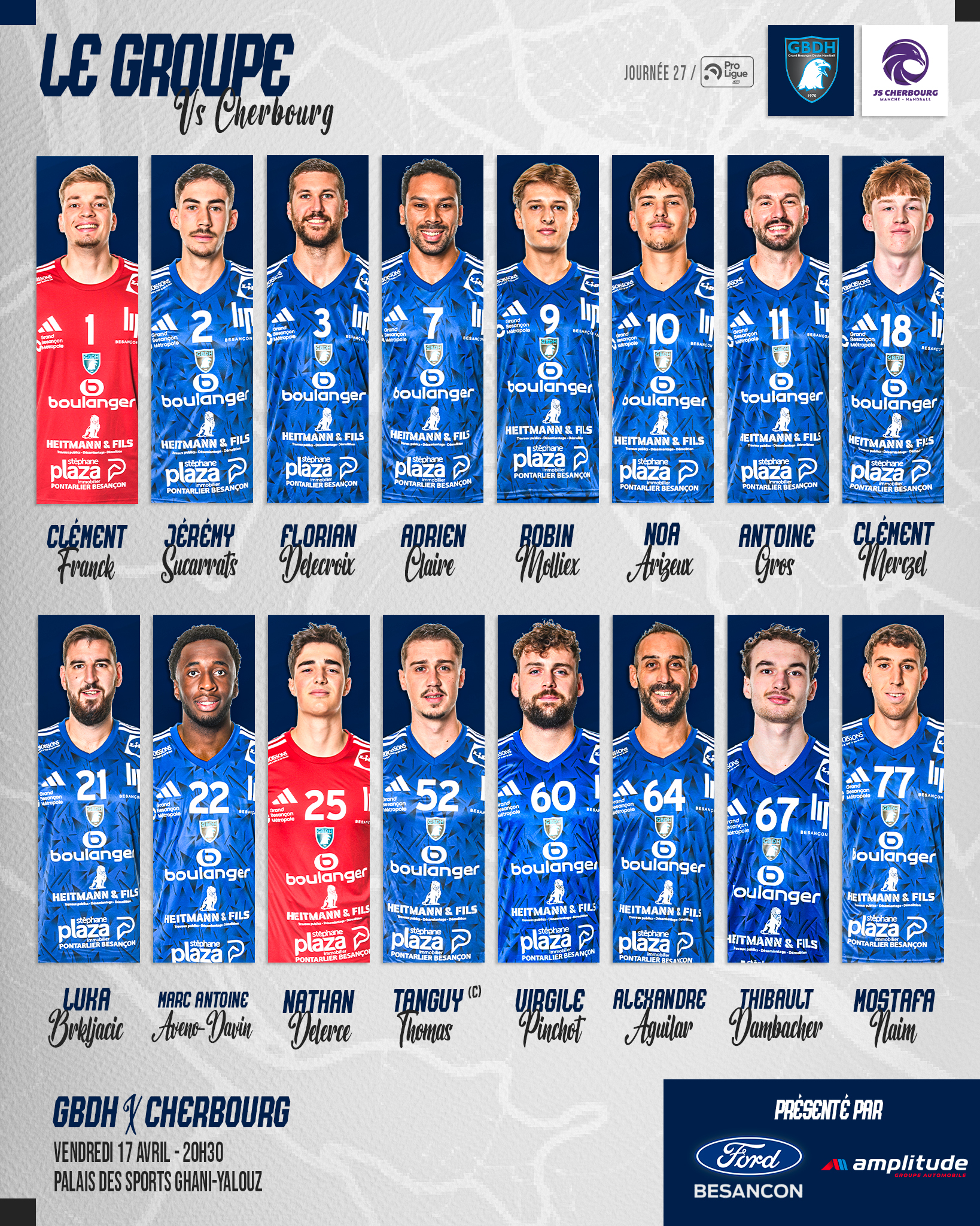 Découvrez ci-dessous le groupe sélectionné par le coach Christophe VIENNET et Gaël MICHAUD avant GBDH – JS CHERBOURG